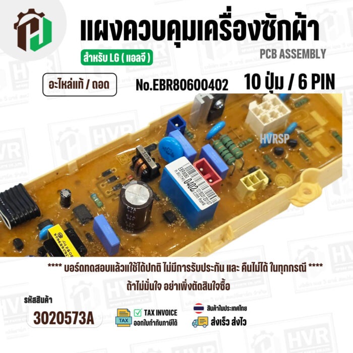 มาเป็นคนแรกที่วิจารณ์ “แผงควบคุมเครื่องซักผ้า LG WF-T1080,WF-T1180,WF-S1017 ( EBR80600402 ) ( PCB Assembly ) ( แท้ / ถอด ) #3020573A”