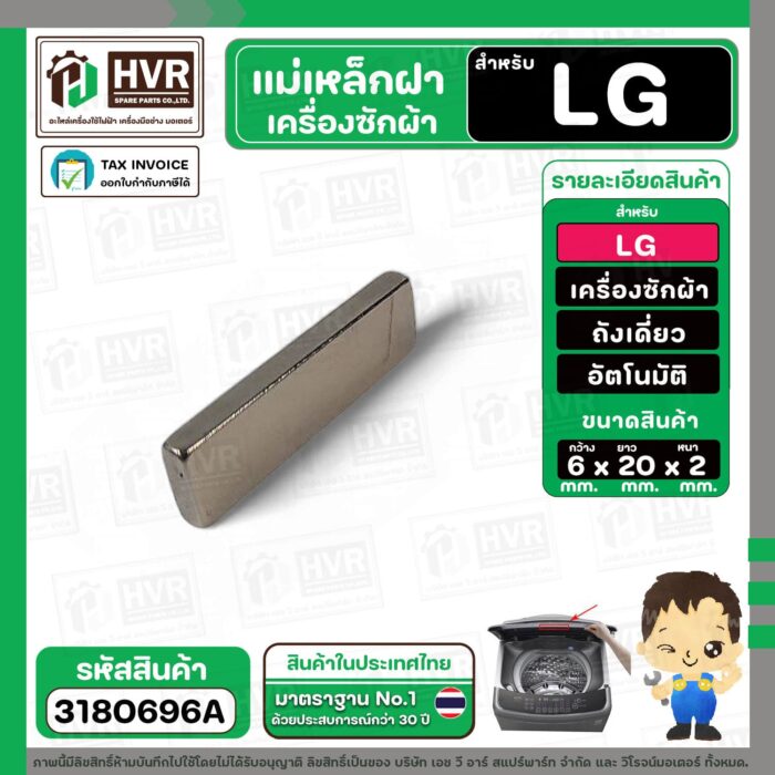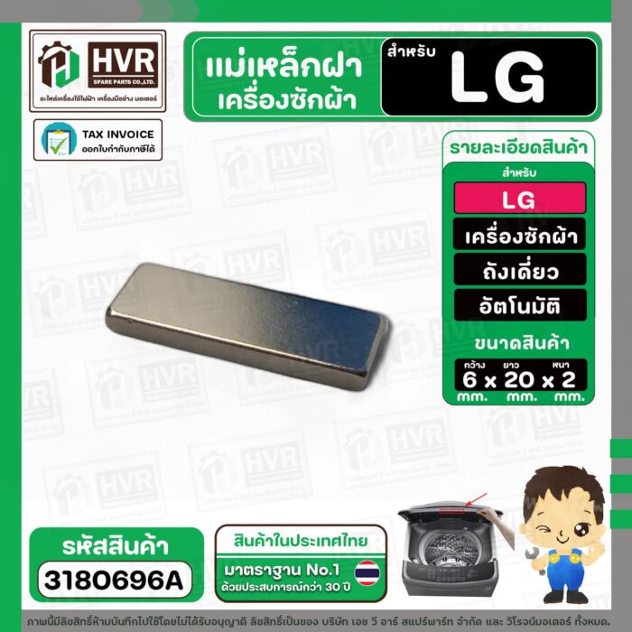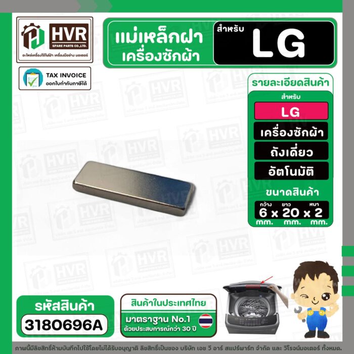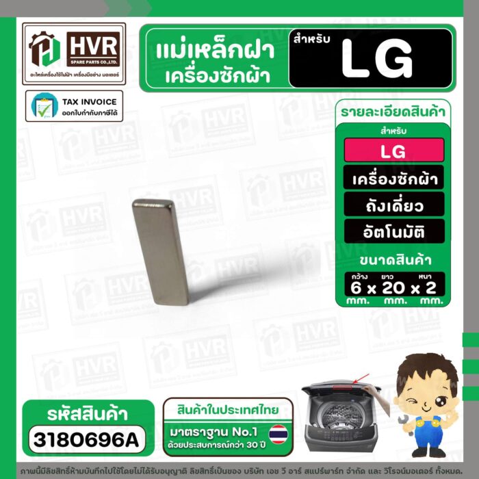 แม่เหล็กฝาเครื่องซักผ้า LG กว้าง 6 mm. x ยาว 20 mm. x หนา 2 mm. #3180696A