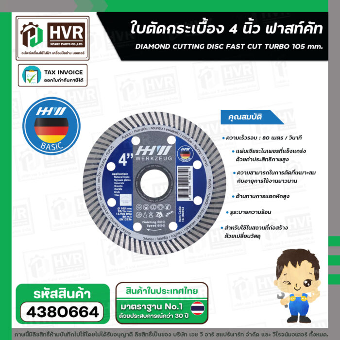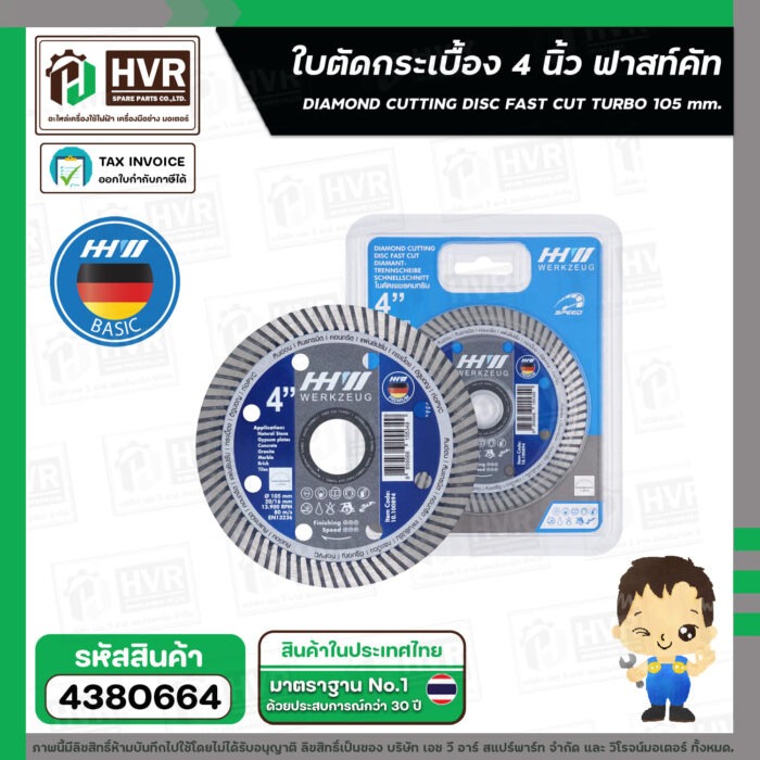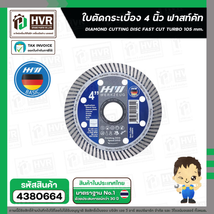ใบตัดกระเบื้อง 4 นิ้ว ( 105 mm. ) ( HHW ) Fast turbo ( เยอรมัน ) #10.100894 #4380664