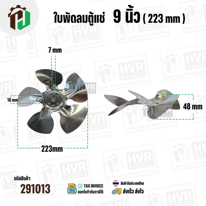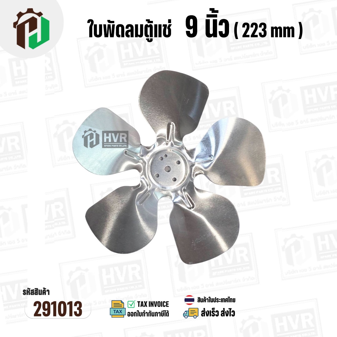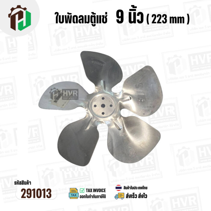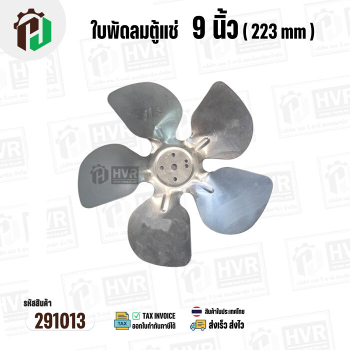 ใบพัดลมตู้แช่ 9 นิ้ว ( 22.3 cm ) รูกลาง 7 mm ( ใบพัด 5 แฉก ) ( อลูมิเนียม ) #อะไหล่ตู้แช่ #291013