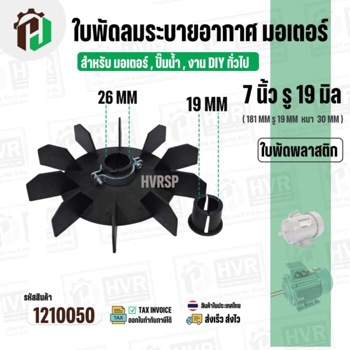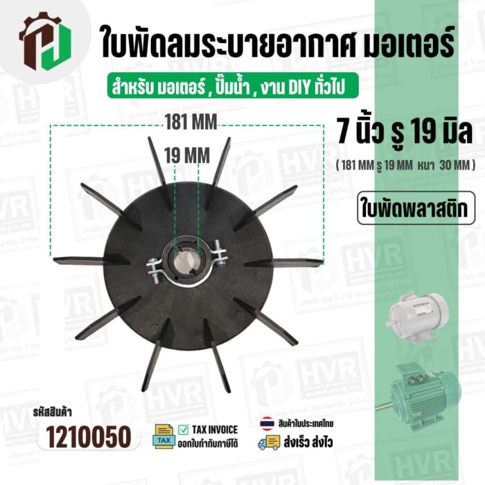 >> ขนาดใบพัด กว้าง 7 นิ้ว รูใน 19 mm. 181 mm. x 19 mm. หนา 30 mm.