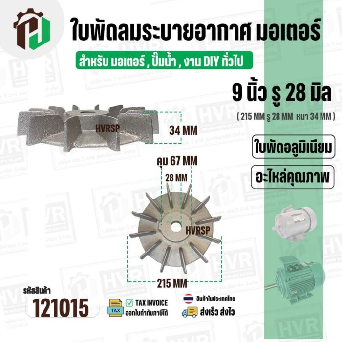 ใบพัดลมมอเตอร์ ( อลูมิเนียม ) 9 นิ้ว รู 28 mm. ( 215 mm.รู 28 mm. ดุม 67 mm. หนา 34 mm.)