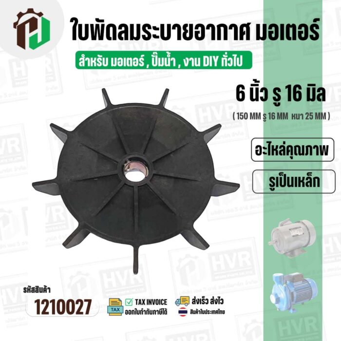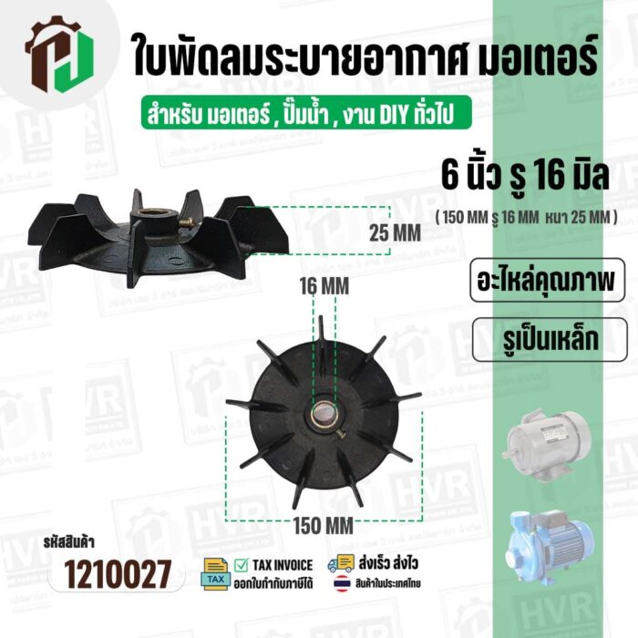 >> ขนาดใบพัด กว้าง 6 นิ้ว รูใน 16 mm. ( 150 mm. x 16 mm. )