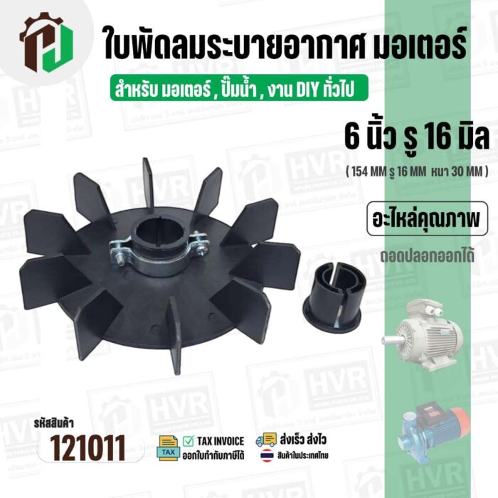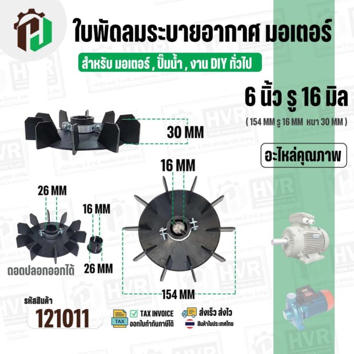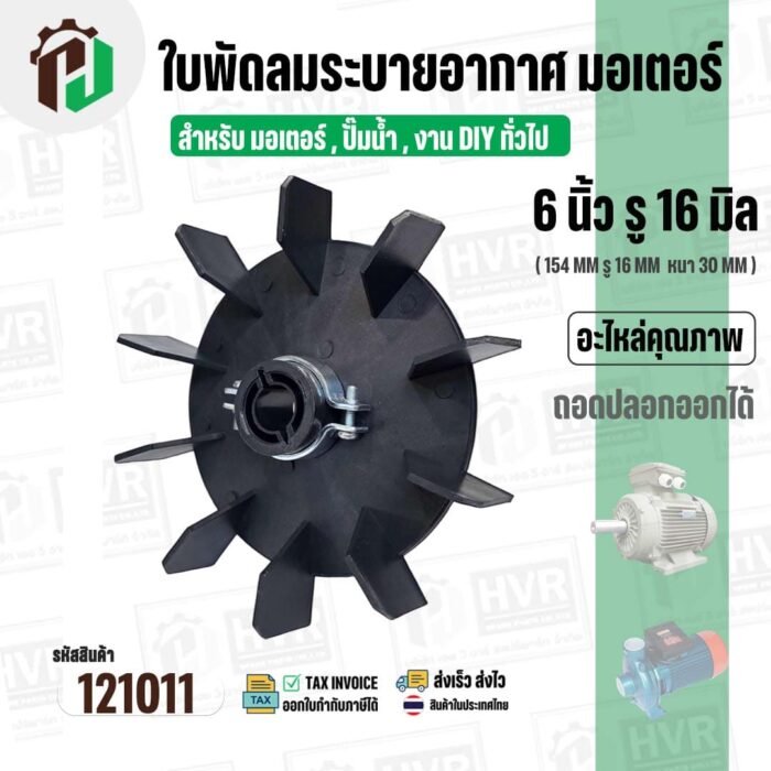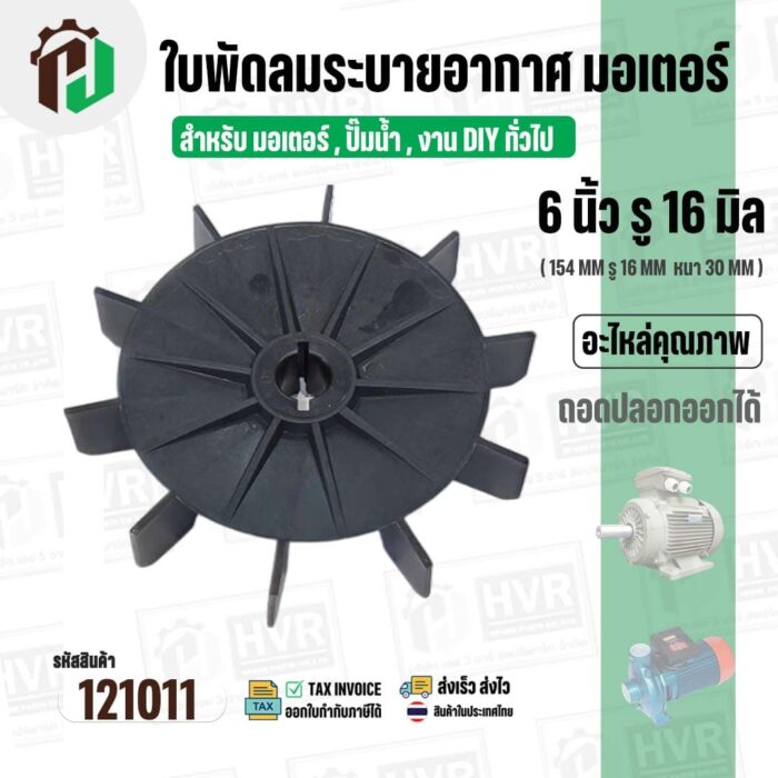 >> ขนาดใบพัด กว้าง 6 นิ้ว รูใน 16 mm. ( 154 mm. x 16 mm. ) หนา 30 mm.