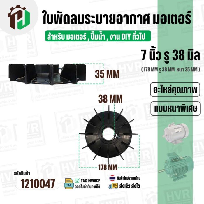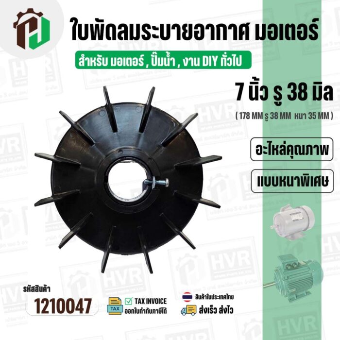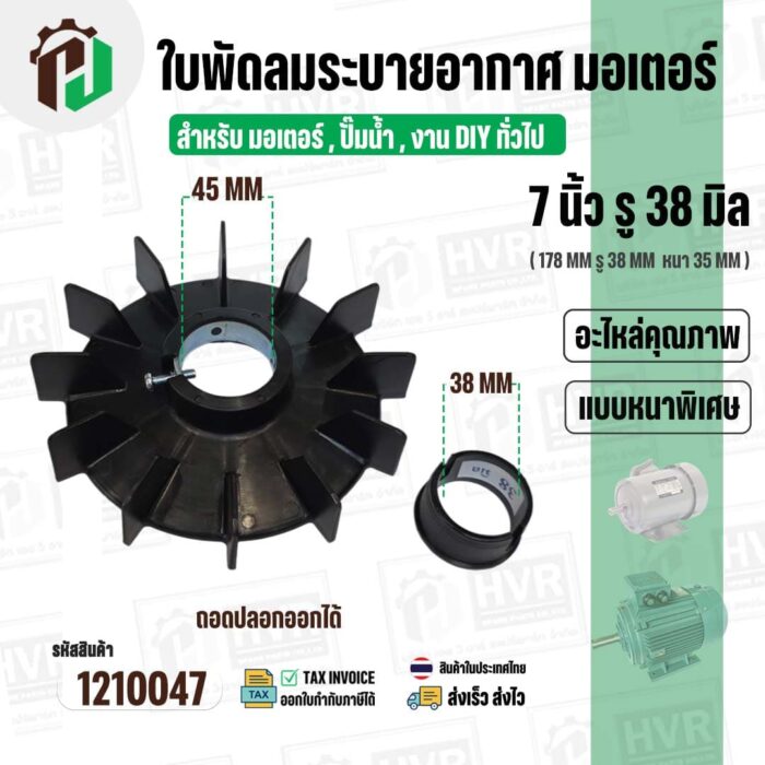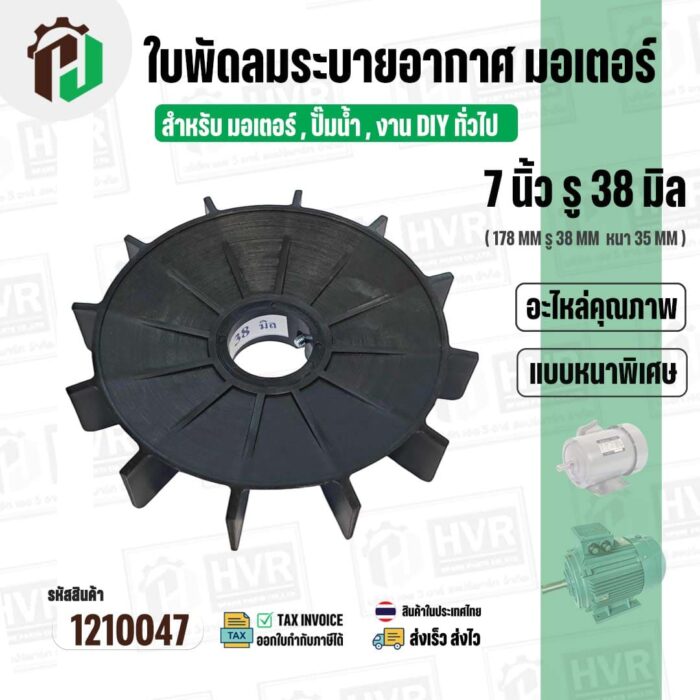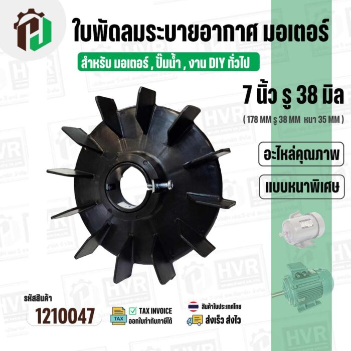 >> ขนาดใบพัด กว้าง 7 นิ้ว รูใน 38 mm. ( 178 mm. x 38 mm. ) หนา 35 mm.