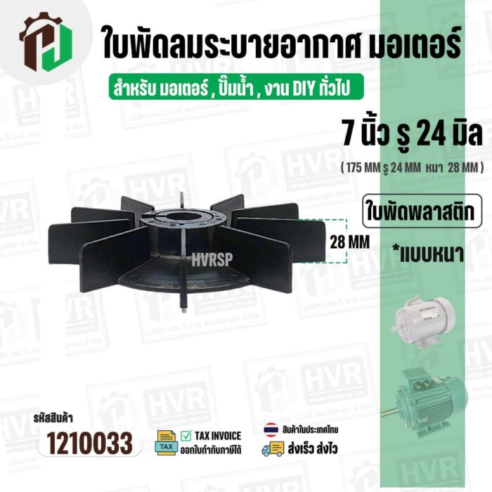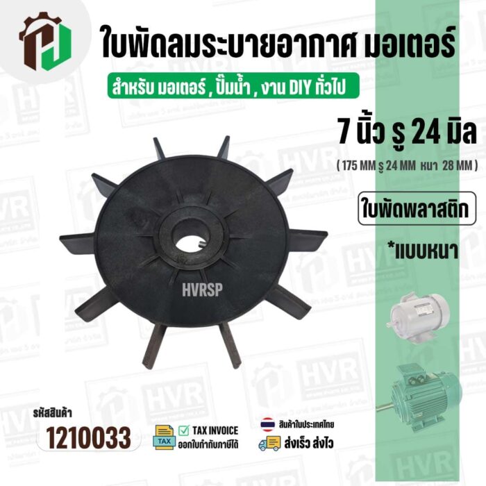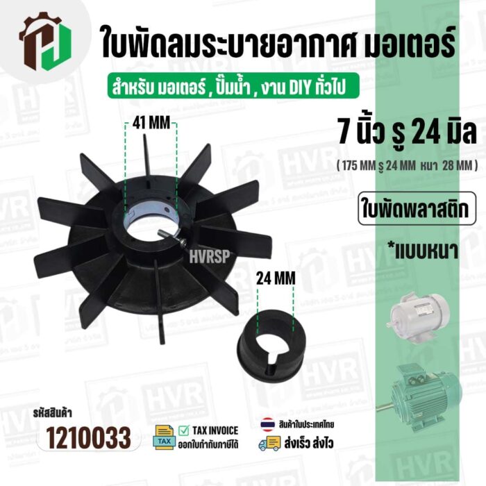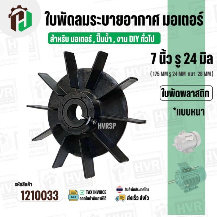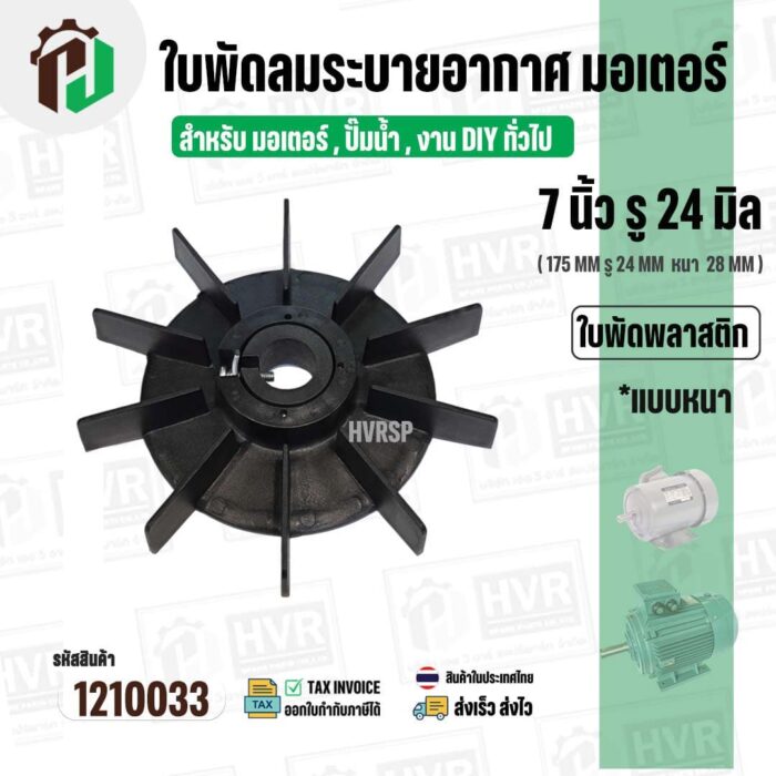 >> ขนาดใบพัด กว้าง 7 นิ้ว รูใน 24 mm. 175 mm. x 19 mm. หนา 28 mm.