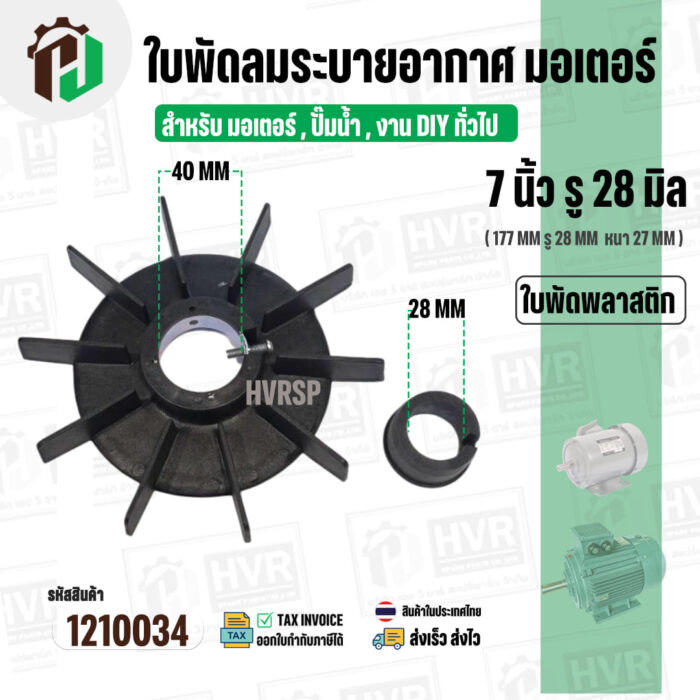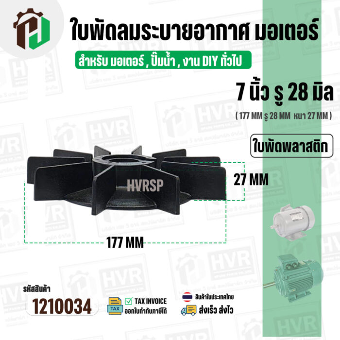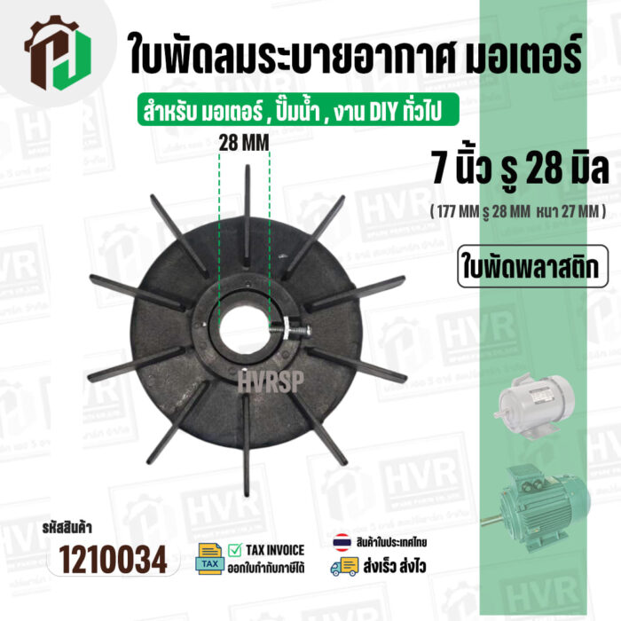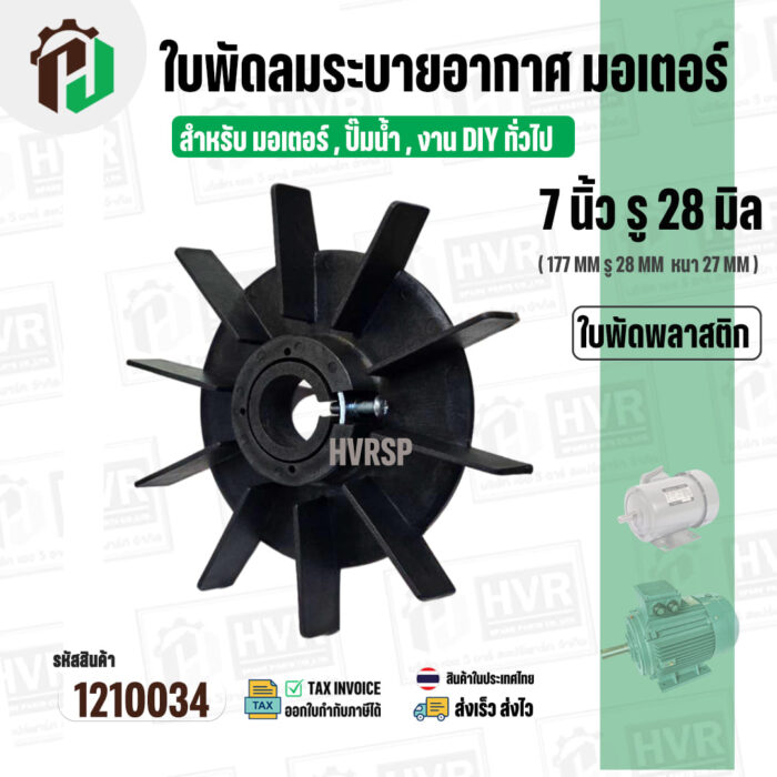 >> ขนาดใบพัด กว้าง 7 นิ้ว รูใน 28 mm. ( 177 mm. x 28 mm. หนา 27 mm.