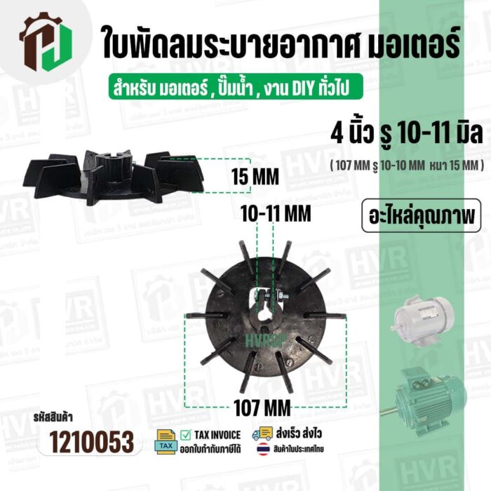 >> ขนาดใบพัด กว้าง 4 นิ้ว รูใน 10-11 mm. ( 107 mm. x 10-11 mm. ) หนา 15 mm.