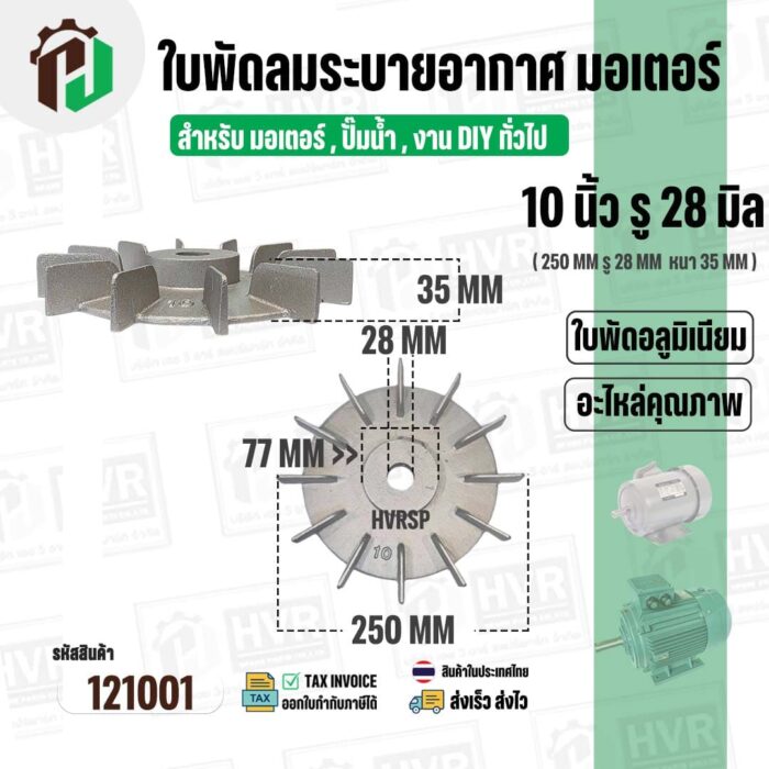 >> ขนาดใบพัด กว้าง 10 นิ้ว รูใน 28 mm. ( 250 mm. x 28 mm. ) หนา 35 mm. ( ดุมกลางกว้าง 77 mm. )