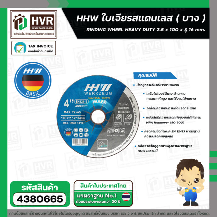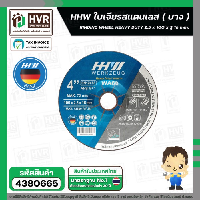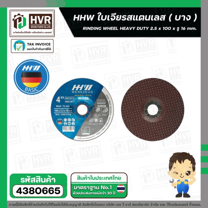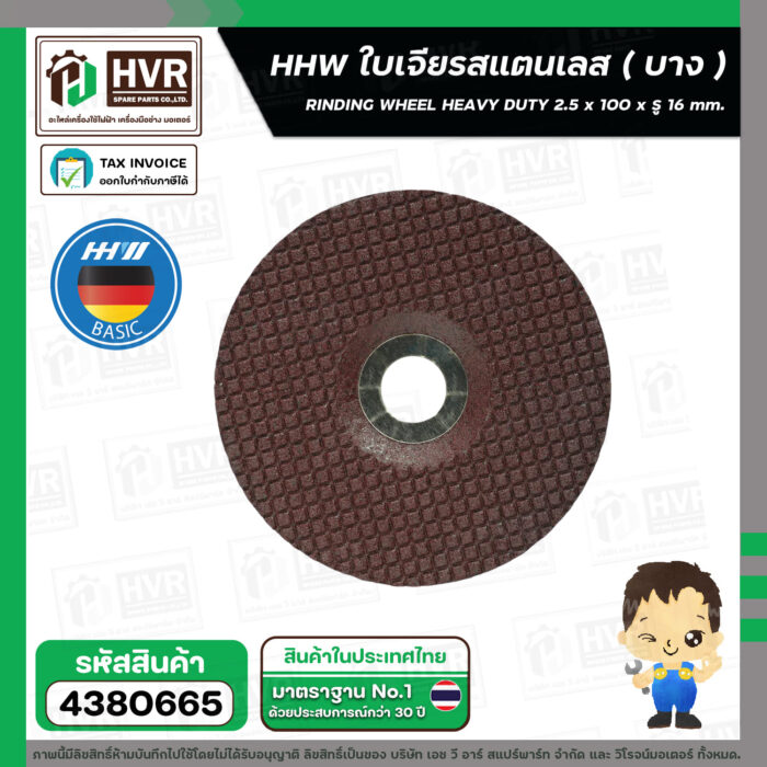 ใบเจียรสแตนเลส ( บาง ) 2.5 x 100 x รู 16 mm. ( HHW ) เกรด เยอรมัน ( 10.100751 )