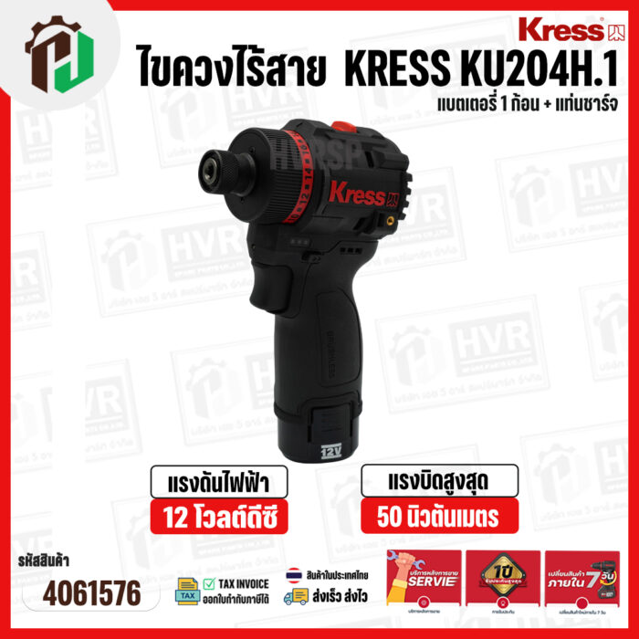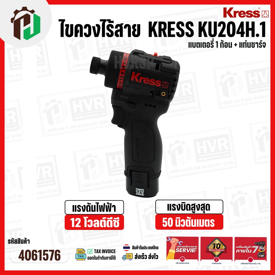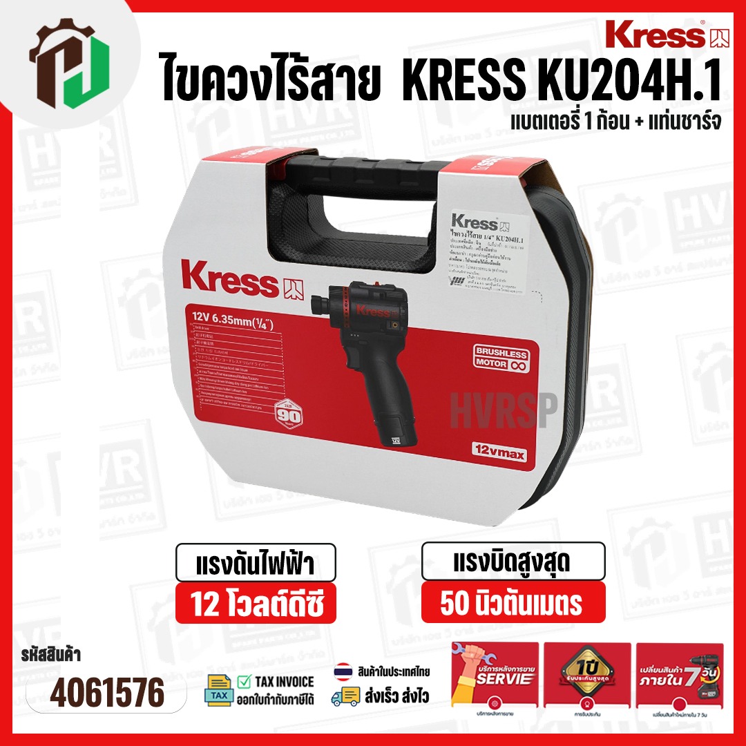 ไขควงกระแทกไร้สาย 1/4″ KRESS KU204H.1 ( 12V ) 50 Nm ( แบตเตอรี่ 1 ก้อน + แท่นชาร์จ ) #4061576