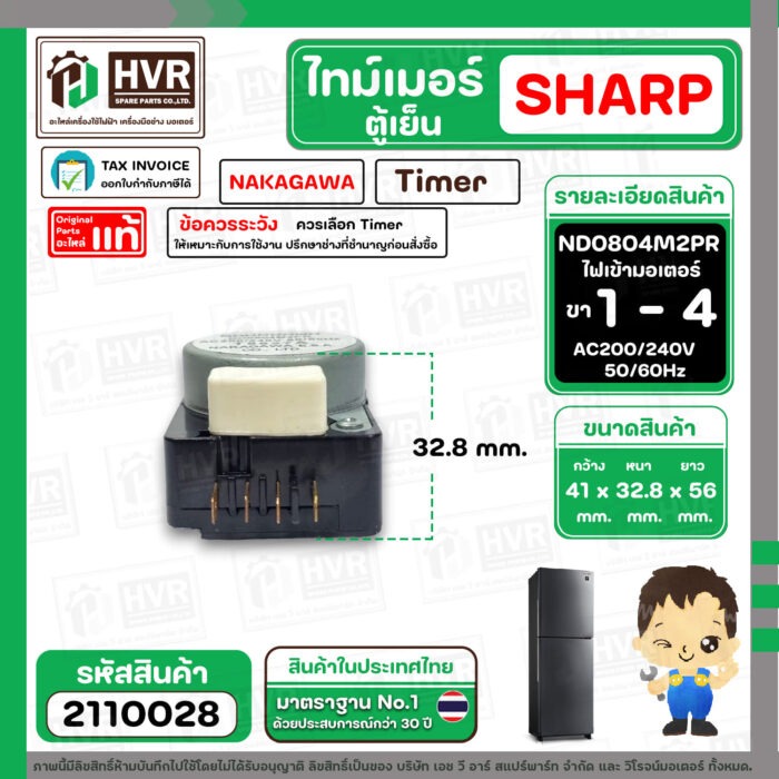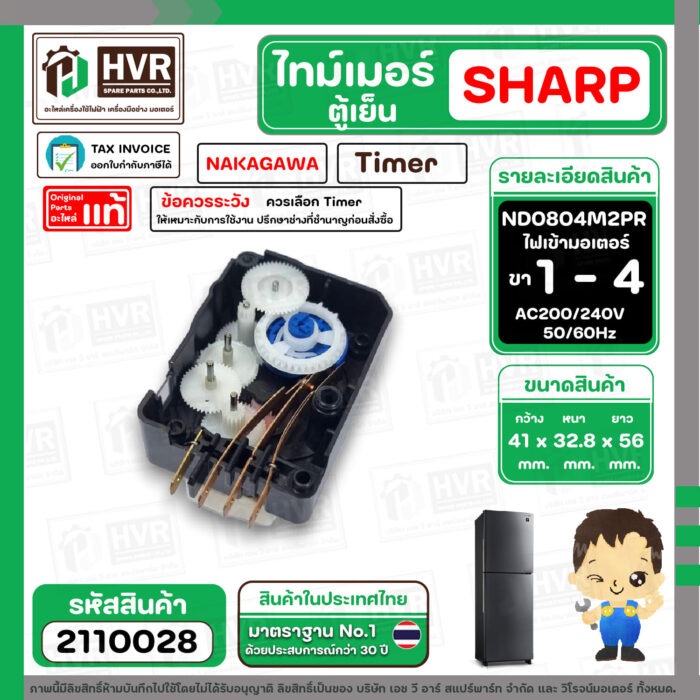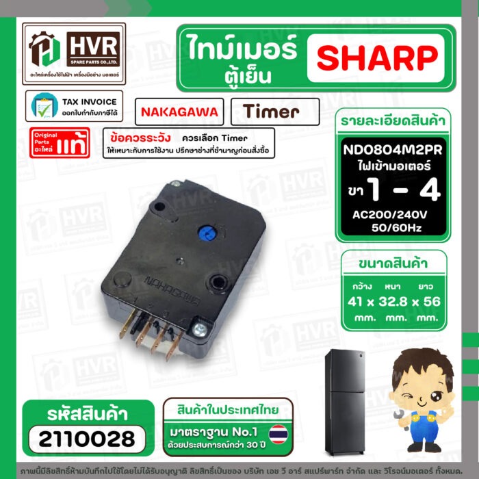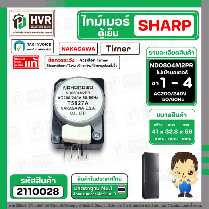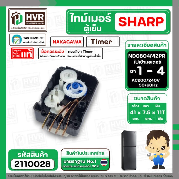 ไทม์เมอร์ตู้เย็น SHARP ( ชาร์ป ) NAKAGAWA ( แท้ ) รุ่น ND0804M2PR ขาไฟมอเตอร์ 1 – 4 AC200-240V 50/60Hz #นาฬิกาตู้เย็น #อะไหล่ตู้เย็น #2110028