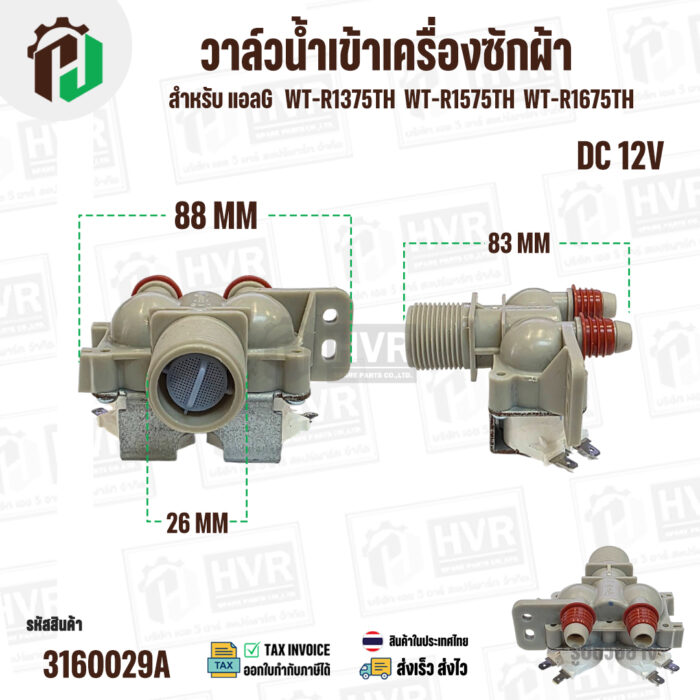 วาล์วน้ำเข้าเครื่องซักผ้า LG WT-R1375TH WT-R1575TH WT-R1675TH Part.5221EA1001K ( DC 12V) ( เข้า 1 ออก 2 ทาง ตรงออกตรง) #3160029A