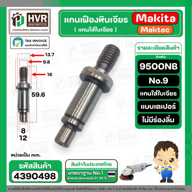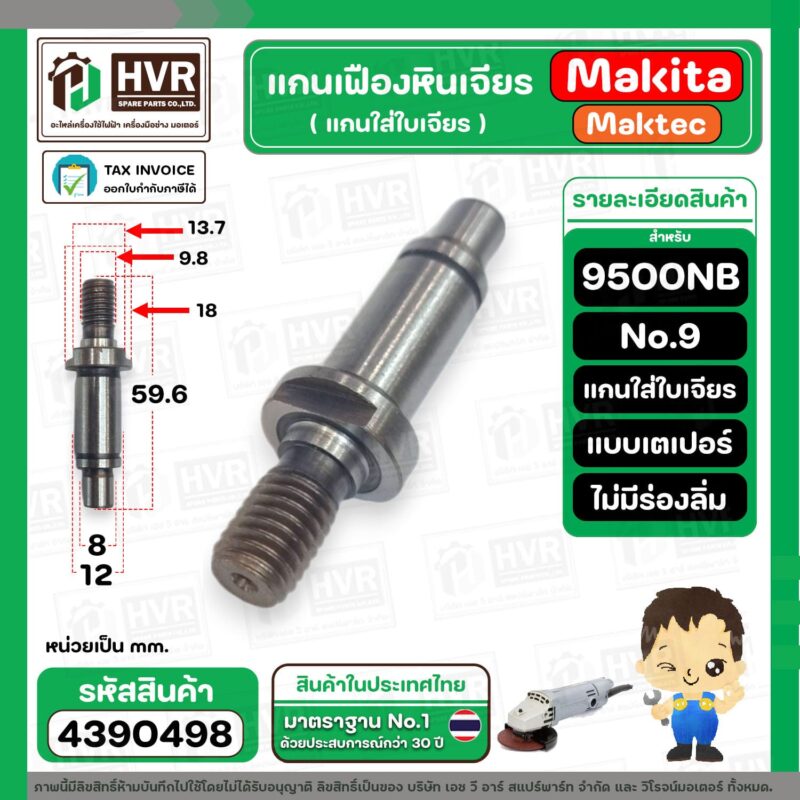 “แกนเฟืองหินเจียร MAKITA รุ่น 9500NB No.9 ( แกนจับใบเจียร ) #4390498 “